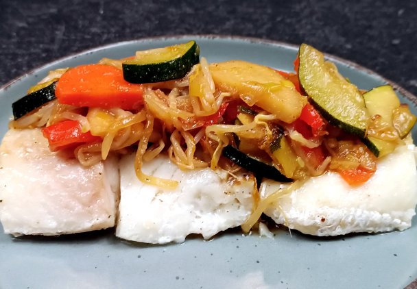 Potrawka z dorsza z warzywami. Dorsz należy do najsmaczniejszych i najzdrowszych ryb morskich. Jej zalety to białe, chude i delikatne mięso. Dzisiaj zaprezentuję tobie potrawkę mojego autorstwa i gwarantuję tobie wspaniałe doznania smakowe. Zaplanuj sobie dobrze przyrządzenie tej potrawy. Pamietaj, aby ryby nie piec zbyt długo, żeby była soczysta natomiast warzywa chrupiące.