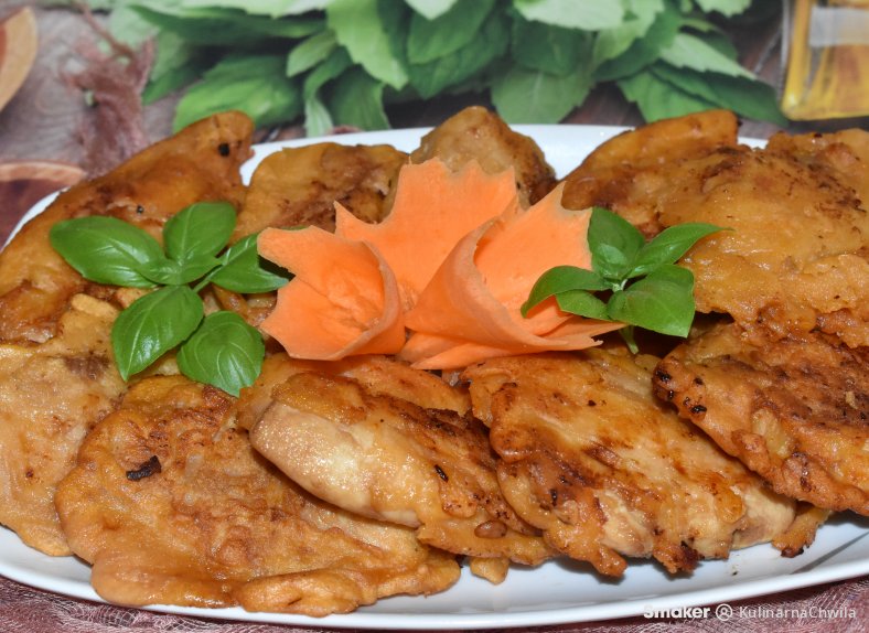 3. Mięso zanurzamy w cieście i przekładamy na rozgrzany olej. Smażymy z każdej strony na złoty kolor.