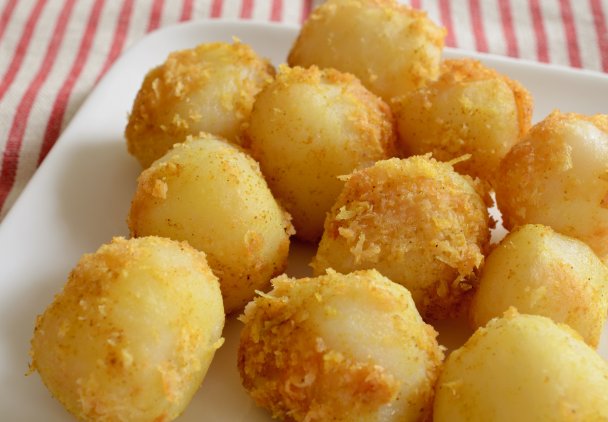 W tym czasie na patelni połącz masło z bułką tartą. Obtaczaj w takiej panierce pyzy bezpośrednio na talerzu podczas podania.