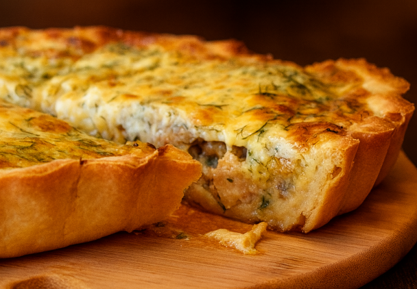 Soczysty quiche z kurczakiem i pieczarkami — delikatne ciasto, kremowa masa i aromatyczne dodatki. Gotuje 9-letnia szefowa kuchni Barbara. Wideo-przepis: https://youtu.be/-9HSGKMe4h8