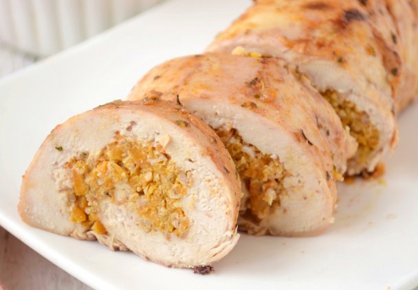 Rolada z farszem z dyni to bardzo oryginalna propozycja na uroczysty obiad. Łączy na pozór nie przystające do siebie smaki i tekstury w spójną, smakowitą całość. Jest to przy tym pełen cennych dla zdrowia składników posiłek.