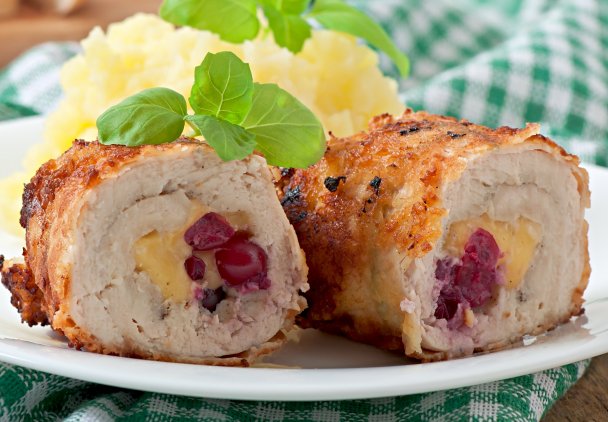 Roladki z żurawiną to pyszne i wytworne danie, które przyrządzisz prosto i szybko. Ich środek jest niesamowity i łączy w sobie kwaskowate owoce oraz aromatyczny, wyrazisty ser. Sprawdzą się idealnie na uroczystą kolację we dwoje czy niesamowite danie główne na rodzinnej imprezie.