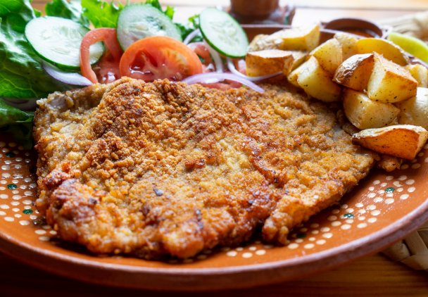 W odróżnieniu od naszych klasycznych kotletów, włoskie schabowe powstają z cielęciny. To delikatne, ale soczyste mięso. Świetnie smakuje z panierką z bułki tartej, parmezanu i bazylii.