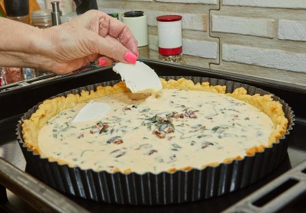 Tarta z grzybami i serem to idealne danie na spotkania ze znajomymi, wszelkiego rodzaju imprezy plenerowe czy domowe, a także na pożywną obiadokolację.