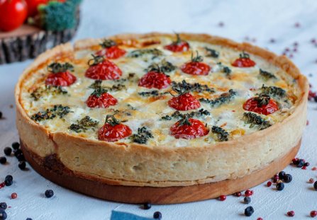 Choć może się wydawać, że tarta z pomidorami i szpinakiem stanowi wyzwanie dla amatorów kuchni, jest wręcz przeciwnie. Zapiekanka jest bardzo prosta w wykonaniu, przyrządzisz ją z produktów, które znajdują się zwykle w kuchennej szafce i lodówce, a ciasto możesz przygotować nawet dzień wcześniej. Tarta świetnie smakuje na ciepło, podana bezpośrednio z pieca lub na zimno jako pożywna przekąska. Sprawdzi się na pikniku, ponieważ możesz ją jeść bez użycia sztućców Wersja podstawowa zapiekanki jest wegetariańska, ale jeśli chcesz ją wzbogacić o inne składniki niż warzywa, dodaj kawałki gotowanego kurczaka lub wędzonego łososia.