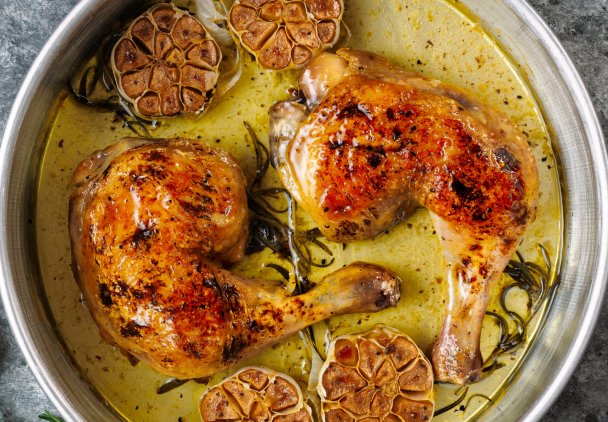 Niezwykle soczyste i aromatyczne udka z kurczaka, skąpane w aksamitnym, gęstym sosie na bazie śmietanki i dużej ilości świeżego czosnku. Długie pieczenie sprawia, że mięso staje się kruche i z łatwością odchodzi od kości, a intensywnie czosnkowa nuta przenika każdą warstwę potrawy, nadając jej wyrazistego charakteru. Kremowy sos, wzbogacony o nutę rozmarynu świetnie współgra z tłuczonymi ziemniakami lub gotowanym ryżem, tworząc spójną całość. Do tego obowiązkowo lekka, chrupiąca surówka.