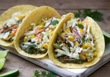 Te wegetariańskie tacos to idealna propozycja na szybki lunch do pracy albo obiad czy kolację bez mięsa. Kremowy, zielony hummus ze szpinakiem stanowi bazę, a na nim ląduje kolorowa, chrupiąca mieszanka warzyw. Całość jest orzeźwiająca, sycąca i bardzo uniwersalna.
