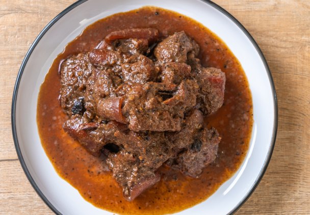 Delikatna, kruchutka wołowina duszona po kozacku w czerwonym winie z dodatkiem podstawowych przypraw. Mięso wychodzi niesamowicie soczyste i aromatyczne. Cudownie smakuje z gotowanymi ziemniakami i chrupiącą surówką. Choć przygotowanie mięsa jest nieco czasochłonne, smak wynagradza wszystkie starania.