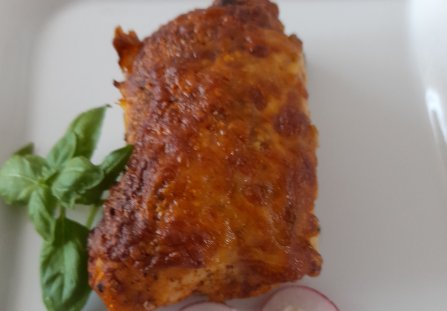 Filet z kurczaka otulony szpinakowo- serowym nadzieniem, smakuje wybornie.