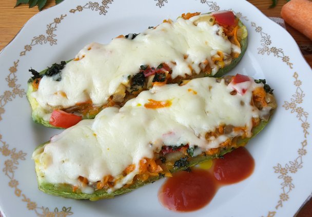 Zapiekana cukinia z kaszą i pieczarkami to potrawa, które udowadnia, że kuchnia jarska może być sycąca i pełna smaku. Wystarczy kilka prostych składników - cukinia, kasza jaglana, pieczarki i przyprawy, żeby powstało aromatyczne i rozgrzewające danie. Cukinia po upieczeniu w piekarniku staje się miękka i delikatnie słodka, a farsz z kaszy i pieczarek dodaje jej więcej smaku. To świetny sposób na wykorzystanie sezonowych warzyw i pozostałej z poprzedniego obiadu kaszy. Zapiekana cukinia jest idealna zarówno na lekki obiad, jak i pełniejszą kolację. Podana z łyżką jogurtu naturalnego, sosu czosnkowego lub ketchupu smakuje jeszcze lepiej.