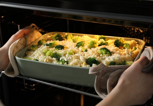 Zapiekankę makaronową bez mięsa piecz w piekarniku rozgrzanym do 180 stopni przez około 25 minut (do zarumienienia).