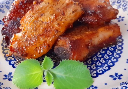 Żebarka umyć, osuszyć, podzielić na porcje z kostką. Umieścić w salaterce.