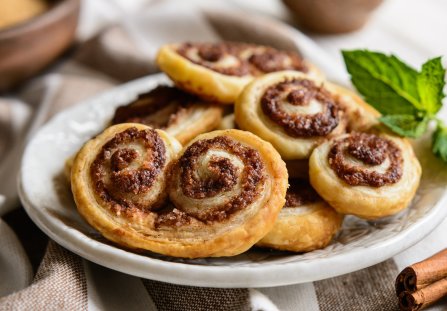 Ciasteczka palmiery to jeden z najprostszych wypieków z ciasta francuskiego. Jeśli tylko masz zwyczaj mieć je w lodówce, taki deser możesz zaserwować niespodziewanym gościom. Przygotowanie palmierów (które swoją nazwę zawdzięczają kształtowi przypominającemu liście palmy) zajmuje dosłownie chwilę.