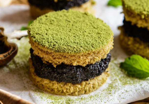 Kruche ciastka matcha – z dodatkiem zielonej japońskiej herbaty – komponują się wyśmienicie z nadzieniem makowym à la makowiec japoński.