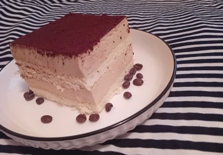 Do blachy włożyć biszkopt,posmarować połową kremu. Położyć drugi biszkopt, nałożyć resztę kremu. Posypać kakao lub startą czekoladą.