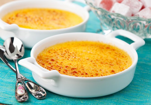 Ten klasyczny deser pochodzi z Francji i oznacza „spaloną śmietankę”. Waniliowy krem na bazie żółtek jest posypany warstwą cukru, którą następnie należy skarmelizować. Dzięki temu wierzch jest chrupiący i przyjemnie pęka podczas jedzenia. By uzyskać prawdziwie waniliowy smak, warto użyć prawdziwego ekstraktu lub pasty z czystej wanilii. Z całą pewnością odradza się zwykłe aromaty lub cukry wanilinowe.
