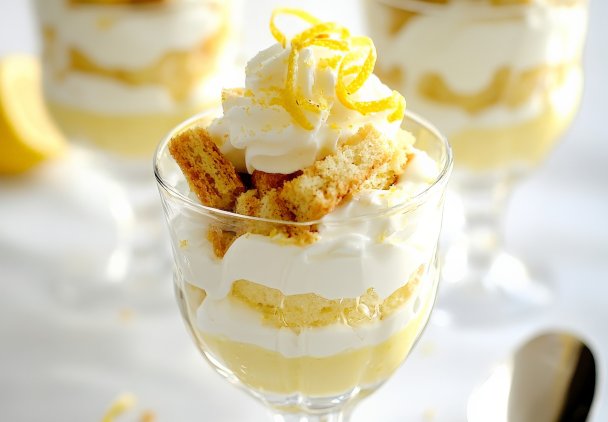 Chcesz przygotować prosty, a zarazem efektowny i smaczny deser noworoczny? Co powiesz na kwaskowy krem cytrynowy połączony z kremową bitą śmietaną i chrupkimi ciasteczkami?
