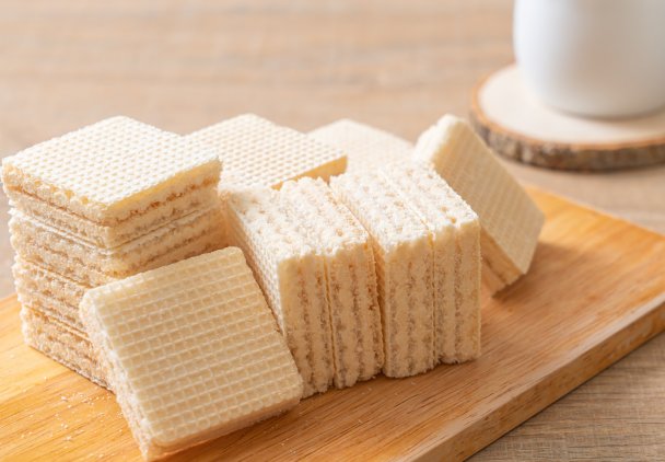 Smak dzieciństwa, czyli domowe wafle przekładane masą na bazie galaretki i mleka w proszku. Prosty deser, który przygotujemy bez udziału piekarnika. Są tak dobre, że nie zostają po nich nawet okruszki.