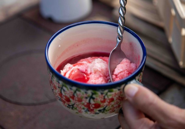 To jedna z potraw, którą wspominam z lat dzieciństwa - grysik na mleku podany z sokiem malinowym. Przepis pochodzi z 556. odcinka programu Ewa Gotuje.