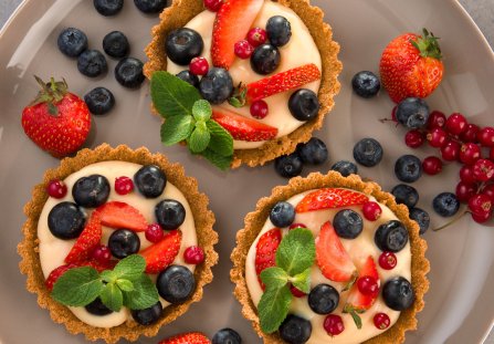 Karnawałowe babeczki udekoruj świeżymi owocami i listkami mięty. Smacznego!