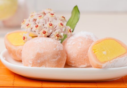Mango mochi podawaj na zimno, od razu po wyjęciu z zamrażarki.