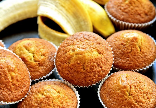 Muffinki bananowe piecz w piekarniku rozgrzanym do 170 stopni przez około 30 minut (do zarumienienia).