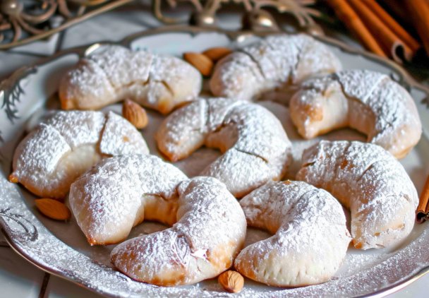 Jeszcze ciepłe rogaliki oprósz cukrem pudrem.