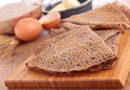 Gotowe naleśniki gryczane odkładaj warstwowo na talerz. Podawaj je na ciepło, z dodatkiem produktów słodkich lub wytrawnych.