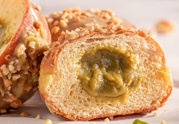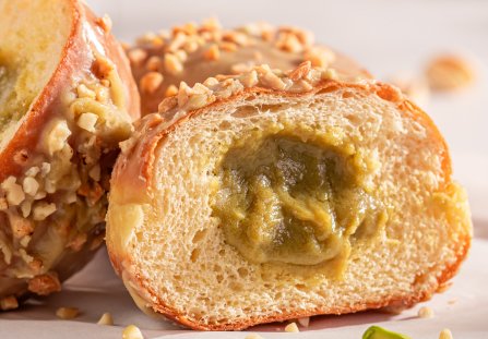 Puszyste pączki z obłędnym nadzieniem pistacjowym. Są tak dobre, że na pewno ja jednym nie poprzestaniecie. Udekorowane lukrem i orzechami prezentują się bardzo apetycznie. Wszystkie składniki na pączki wyciągnij z lodówki na około godzinę przed rozpoczęciem prac w kuchni.