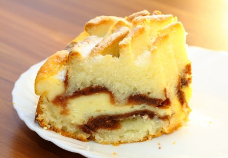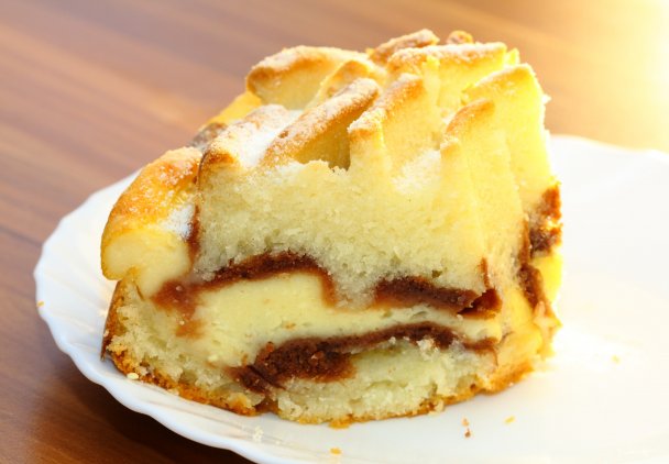 Przed podaniem (gdy babka całkowicie wystygnie) możesz oprószyć placek cukrem pudrem.