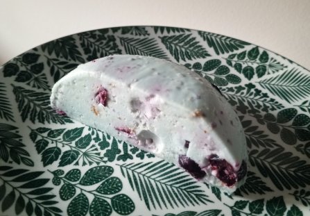 Prosty, ekspresowy deser na zimno. Użyłem borówek i galaretki borówkowej, do bananów użyłbym żółtej galaretki, do malin czerwonej itd..