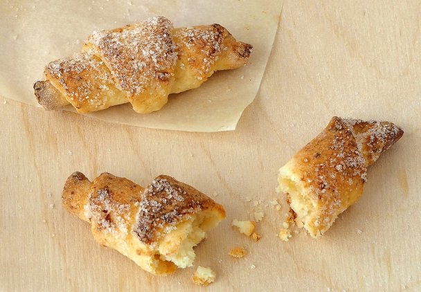 Kruche rogaliki à la cynamonki to szybki i prosty przepis na małe co nieco do kawy czy herbaty. Powstają z kruchego ciasta na bazie masła, mąki i twarogu. Nadzienie to połączenie cukru z cynamonem. Nic prostszego! Udadzą się nawet początkującym kucharzom.