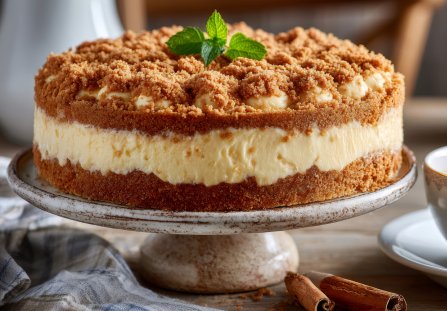 Sernik cynamonowy to prawdziwe połączenie zimowego komfortu z elegancją klasycznego deseru. Kremowa masa serowa o delikatnym aromacie pomarańczy spoczywa na maślanym, cynamonowym spodzie, który dodaje całości wyjątkowego charakteru. Idealny na święta, długie wieczory z kawą lub po prostu wtedy, gdy masz ochotę na coś wyjątkowego.