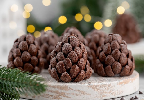 Patrzysz na szyszki czekoladowe i myślisz, że ich przygotowanie wymaga ogromnej cierpliwości i sporej liczby składników? Nic bardziej mylnego! Choć wyglądają jak z cukierniczej wystawy, robi się je dosłownie w kilka minut. W dodatku powstają tylko z trzech prostych składników. Zwykły deser zamienia się w coś super efektownego, co zaskoczy twoich bliskich. Idealne na święta, zimowy stół albo jako słodka dekoracja. Dla lepszego efektu, możesz je oprószyć dodatkowo cukrem pudrem.
