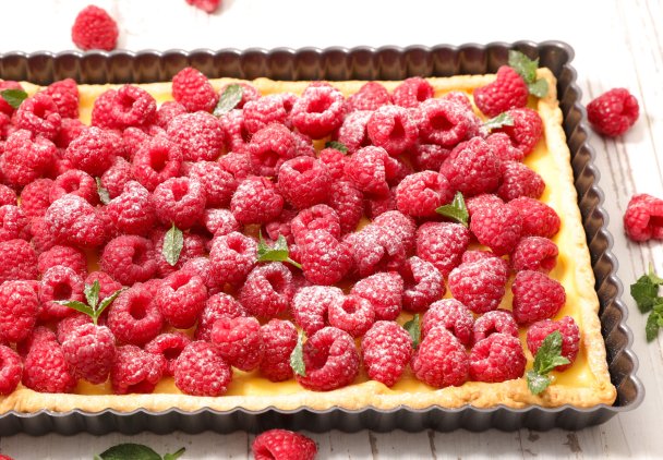 Obłędna krucha tarta z budyniem i malinami. Deser, który poskromi każdego łasucha. Jej przygotowanie nie jest trudne. Najbardziej czasochłonne jest zrobienie kruchego ciasta do tarty, które w razie potrzeby można upiec nawet dzień wcześniej. Ugotowanie budyniu i udekorowanie tarty malinami zajmie Wam dosłownie chwilę.