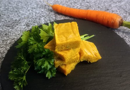 Po upływie tego czasu wyjmujemy zamrożoną kostkę warzywną kroimy w kostkę (wielkość zależy od nas) . Następnie zawijamy folię aluminiową i ponownie zamrażamy .