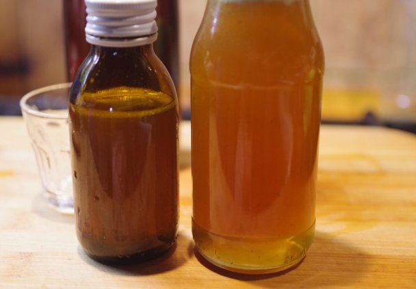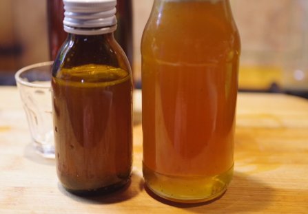 Po całkowitym ostudzeniu dodaj jeszcze wódkę (ja dodałam nalewkę z pączków sosny, którą akurat miałam w domowej apteczce) lub glicerynę. Ten dodatek również zapobiegnie krystalizacji syropu i dodatkowo go zakonserwuje, więc będzie można trzymać go na podręcznym stoliku, a nie w lodówce.