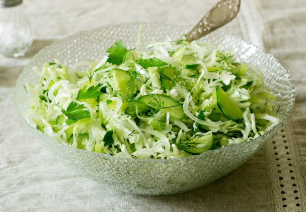 Zielona surówka jest chrupiąca, orzeźwiająca i pasuje do każdego dania. Do tego ma mnóstwo wspaniałych ziół, które podkreślają smak warzyw.