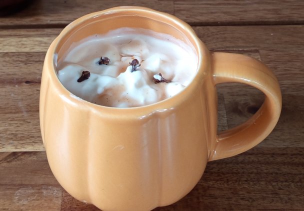 Wsyp do garnka lub patelni cukier(500g) i dodaj wody(720ml) i gotuj aż cukier się rozpuści wsyp przyprawy(cynamon(8-10łżeczek),goździki(18szt),Gałka muszkatołowa(3łyżeczki),suszony imbir(2łyżeczli))Dodaj puree z dyni(80g).Gotuj do wyparowania wody i powstania gęstej konsystencji syropu ok. 15min.