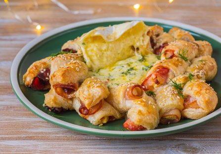Przekąski z ciasta francuskiego są zawsze prawdziwym hitem na każdej imprezie. Mimo że wygląda bardzo efektownie, w rzeczywistości jest proste i szybkie w przygotowaniu. Camembert jest idealną przekąską, która zaspokoi apetyt, a jednocześnie stanie się centralnym i atrakcyjnym wizualnie punktem stołu. Doskonale sprawdzi się na imprezach, przyjęciach, uroczystościach rodzinnych, a także podczas romantycznej kolacji dla dwojga. Intryguje też forma podania, gorącego sera, w którym można maczać chrupiące spiralki z boczkiem.