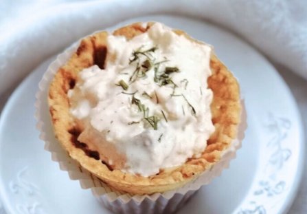 To klasyczne śledzie w śmietanie z jabłkiem, podane w kruchych, wytrawnych babeczkach. Babeczki kupujemy gotowe, ale możemy je też upiec samodzielnie. Jednak użycie gotowych spodów oszczędza nam sporo czasu. Dzięki takiemu serwowaniu, nasze "pospolite" śledzie w śmietanie zyskują nieco twistu i stają się eleganckim daniem, nie tylko na Wigilię.