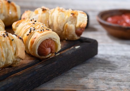 Mini hot-dogi z ciasta francuskiego to przekąska, która przypadnie do gustu dzieciom i dorosłym. Przepis jest banalnie prosty, dlatego każdy sobie z nim poradzi. Hot-dogi posypane ziarnami sezamu i czarnuszki wyglądają niezwykle efektownie. Zrób na zbliżającą się imprezę i zachwyć swoich gości.