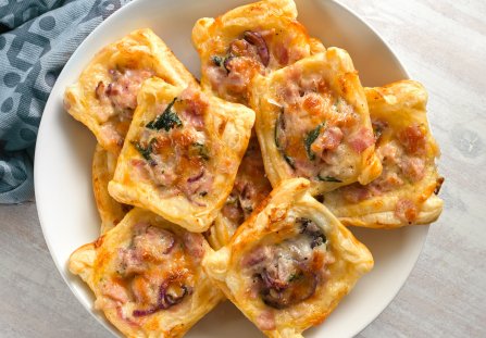 Mini pizzerinki z ciasta francuskiego to hit każdej imprezy. Zawsze znikają ze stołu w pierwszej kolejności. Nie sposób im się oprzeć. Aby przygotować mini pizzerinki wystarczy zaopatrzyć się w opakowanie ciasta francuskiego, resztę składników z pewnością znajdziecie u siebie w kuchni.