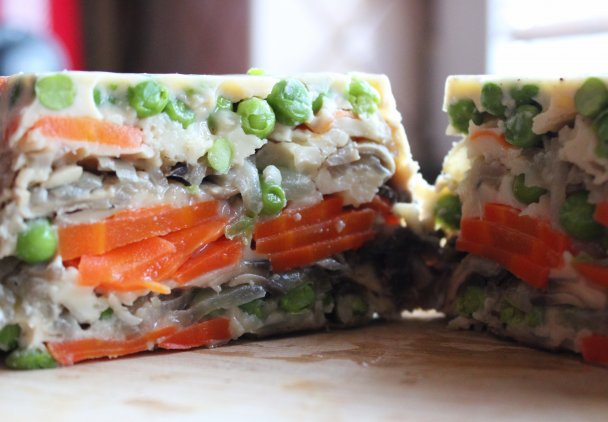 Dzisiaj przedstawiam przepis na pasztet z warzywami takimi jak groszek, marchew, cebula oraz pieczarki. Całość otulona jest rozbełtanym jajkiem z serem i odrobiną mąki. Wspaniały dodatek do świeżo pieczonego chleba.