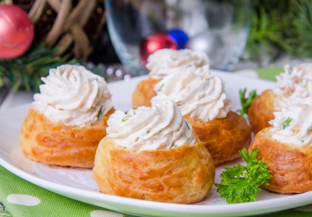 Te pyszne ptysie z kremem łososiowym są idealnie kremowe, wyraziste w smaku i niebanalne, będąc idealną przystawką lub imprezową przekąską.