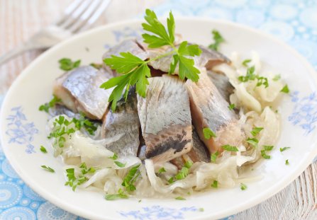 Śledzie po żydowsku najlepiej smakują na drugi dzień, kiedy smaki odpowiednio się przegryzą.
