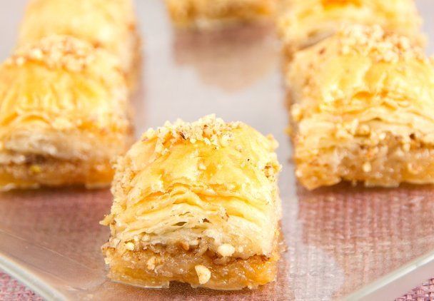Idealna słodka przekąska sylwestrowa to taka, która szybko dodaje energii i nie wymaga zasiadania do stołu. Świetnie sprawdzi się w tej roli turecka baklawa. Przygotuj ją na 2-3 dni przed imprezą – wówczas zdążą przegryźć się smaki deseru.