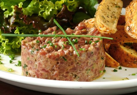 Tatar wołowy to drobno siekana ligawa i dodatki o wyrazistym smaku. Możesz podawać go jako wykwintną przystawkę.