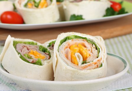 Wrapy z tortilli zawsze będą dobrym pomysłem na poczęstunek dla znajomych podczas spotkania, imprezy czy też wieczornego seansu filmowego. Dużą zaletą tej przekąski jest niemal całkowita dowolność w wyborze składników zawijanych w placek. Mogą być to warzywa, mięso czy pasty. W klasycznej wersji nie może zabraknąć szynki, sera i sałaty. Skorzystaj też ze wskazówki dotyczącej zawijania placka w folię spożywczą, dzięki czemu rollsy nie będą się otwierać.