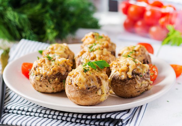Jak wyczarować ze zwykłych pieczarek efektowną przekąskę? Wystarczy zrobić pyszny farsz i nadziać nim kapelusze pieczarek. Po 25 minutach spędzonych w piekarniku mamy genialną przekąskę, która najlepiej smakuje na ciepło tuż po przyrządzeniu.
